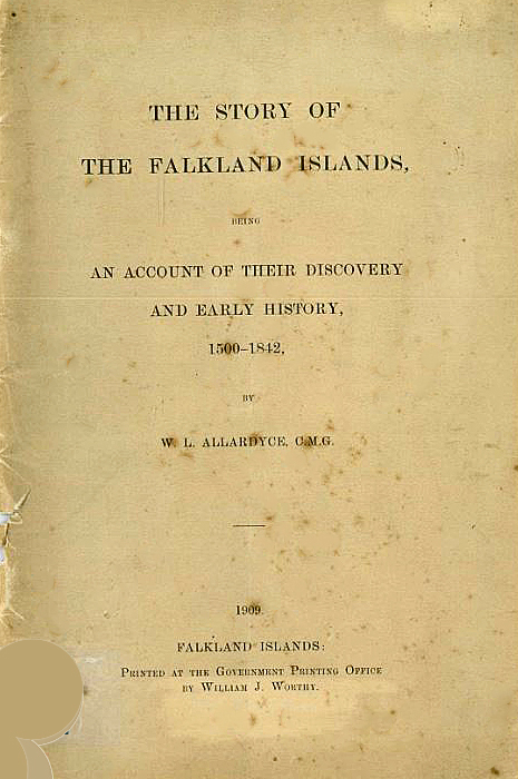 Allardyce sometimes found scant support for his policies from the Colonial Office. Heyburn comments, for example, that his attempts to restrict the number of whale catchers were not well received in London: 'unfortunately, the Colonial Office refused to go along with such strong medicine.' Henry Heyburn rightly described Allardyce as a pioneer Antarctic conservationist; a man of 'broad intellectual interests, tough minded resolution and ready wit. Allardyce's interest in the history of places where he worked is illustrated by the fact that he published a slender monograph (printed in Stanley in 1909) entitled The Story of the Falkland Islands 1500-1842 which is 'effectively the first summary account of the discovery and the early settlement of the island.'