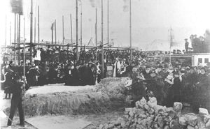 Work was begun under the supervision of Vinnell, one of Blomfield's most able clerks of works, towards the end of 1889. Two bricklayers were sent out by the Bishop's son-in-law Robinson, to erect the building with the aid of local labour. In May 1890 work came to a standstill when some of the local masons gave notice that they would no longer work unless they were paid 12/6d a day - they had been receiving 1/- an hour when working. The strike delayed progress by two or three months.