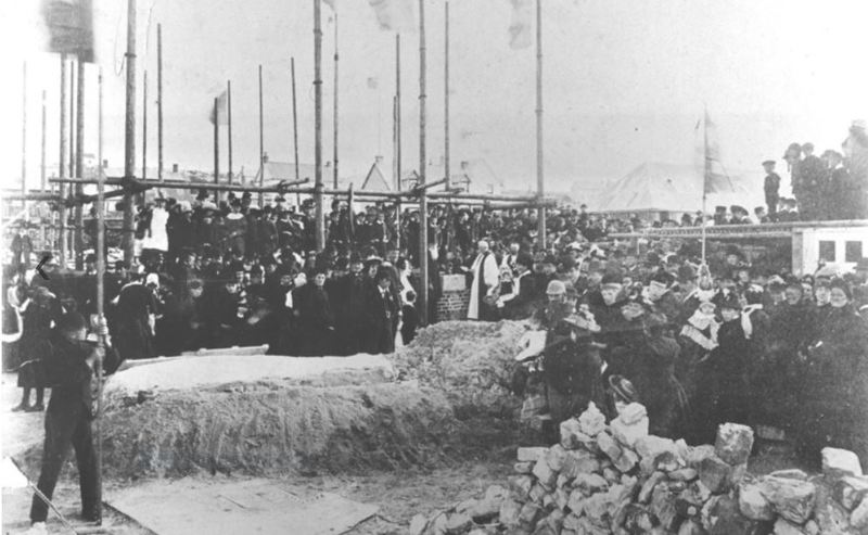 Bishop Stirling laid the foundation stone on 6 March 1890 and, although uncompleted and without an organ, the consecration of the Cathedral by the Bishop took place on Sunday 21 February 1892.