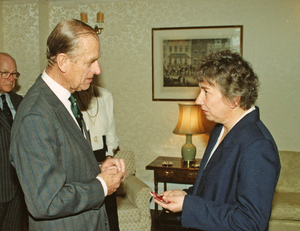 In 1990 Myriam was awarded the MBE. She chose not to travel to England to receive the award at Buckingham Palace, instead choosing to receive it from HRH The Duke ofEdinburgh, at Government House, during his visit to the Falklands later in the year.