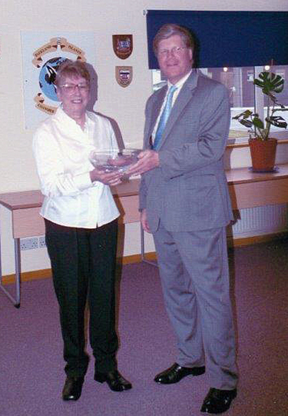 At her retirement ceremony, the BAS Directors who were to pay tribute to her did not arrive in Stanley in time because the flight from Britain was delayed. Standing in for them, the Governor, Howard Pearce, presented her with the gift of a glass bowl. (Source: Falkland Islands Association newsletter) Many tributes were paid by BAS staff when she retired – several of her bosses referred to her as ‘Myriam the Miracle’.