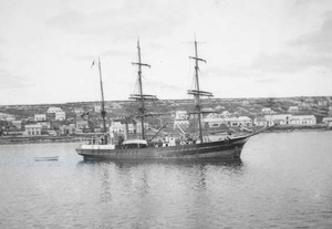 The Dundee whaling expedition of 1892-3 (Balaena) confirmed Bruce's interests in Polar regions and their biology and oceanography. It was on this expedition that he made his first visit to the Falkland Islands. In his book From Edinburgh to the Antarctic Burn-Murdoch wrote some very vivid accounts of life on the Islands which he described as 'very homely and just like Shetland'. The bird life made an enormous impact on Bruce as did the large number of wrecks lying in the harbour which all told 'of some storm, gale and narrow escape - the dismal side of sea life'. As the Balaena was the first of the four ships to arrive Bruce had time to do some research, and Burn-Murdoch describes him as 'disappearing with flowing mackintosh, vascular, geological hammer, Jaeger snow cap and shooting boots - the perfect Antarctic pytheas'. There is another vivid description of Bruce playing his pipes in a potato patch. The Balaena returned again to the Falkland Islands on 27/28 February 1893 when Bruce was amazed to find himself eating gooseberries and redcurrants in February. The expedition was a slight disappointment to Bruce as whaling very much took precedence over science.