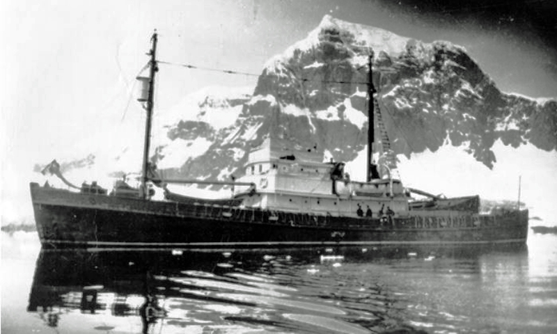 Trepassey (325 tons)was built as a diesel-powered wooden vessel by Clarenville Shipyard at Newfoundland (one of ten such vessels built – commonly known as ‘The Splinter Fleet’) for the Newfoundland Government in 1945; the ship was named after a small fishing village in Newfoundland. Trepassey was leased to FIDS from 1945 until 1949. Trepassey’s task was to replace the SS Eagle - which had proved too unreliable for the work of resupplying the recently established FIDS bases.