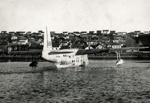 Campbell served as colonial secretary under two governors – Sir Miles CLIFFORD and Sir Raynor ARTHUR. Both governors were fortunate to have such a hardworking and competent deputy and assistant. Campbell was closely involved with a number of significant events in the life of the Falkland Islands. Shortly after he began working in the Islands, Campbell supervised the arrangements for the arrival of the Aquila flying boat, in April 1952. This was the first attempt to provide a regular air service between the Falkland Islands, the South American mainland and the UK.