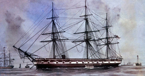 The pinnace was close to the ship, but the rain fell so heavily, and so fierce were the squalls of wind, that the two men in the bows of the boat saw nothing. On board, however, Lieutenant Carpenter heard the splash – perhaps a despairing shout - and diving from the gangway swam to the man’s rescue in a bitterly cold sea. Bush had gone down, but Carpenter found him, pulled him to the surface, and someone in the pinnace pushed an oar out towards them.