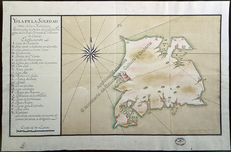 He remained in the station until 1 March 1791, and served three times as comandante gobernador of the Spanish settlement at Puerto de la Soledad (Port Louis) in the Santa Elena, first taking over from Augustín FIGUEROA on 15 May 1785 and staying in post until 25 May 1786,when he was relieved by Pedro de MESA. On 15 May 1787 he took over again from Mesa as governor, serving until 10 April 1788, when he was relieved once again by Mesa. On 29 March 1787 he submitted a manifest in which he stated that the establishment, including the crew of the Santa Elena, consisted of nine officers, 24 soldiers forming the garrison, 88 seamen and 25 convicts. The livestock comprised 2001 cattle, 109 horses and 108 geese. Clairac returned to Puerto de la Soledad for the third time on 16 May 1789, when he took over from Mesa once again, serving until 30 June 1790 when he was relieved by Juan José ELIZALDE. During his time in the Islands he produced a chart of the entire archipelago by sea and land, carrying the necessary horses on board his ship. When he took over as governor in 1785 the settlement had consisted of 34 buildings and its population was under 100, including the garrison. The settlement was also protected by batteries which had been established earlier, two of which he repaired. Livestock of all kinds numbered 7,774 head. Communication between Puerto de la Soledad, Puerto Deseado on the coast and Montevideo was kept up by six warships with orders to protect the Islands from all attacks.