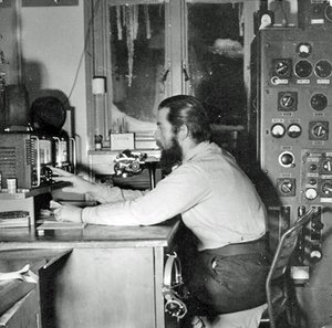 In 1957, he heard of an expedition to Antarctica. He made enquiries and was interviewed by Sir Vivian FUCHS and was then seconded to the Falkland Islands Dependencies Survey (FIDS). He had not told the Navy of this, so there was a slight delay until Sir Vivian was able to clear the way by speaking to a certain Philip Mountbatten (EDINBURGH).) A month later he was in the RRS John Biscoe travelling south.