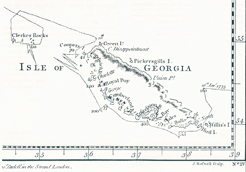 Cook then continued working his way along the north coast of the island until eventually he rounded a point from where he could see that the land he had explored was only a medium sized island thus dispelling the hopes he had entertained that it might be part of an extensive continent. However, he confessed 'the disappointment I now met with did not affect me much, for to judge of the bulk by the sample it would not be worth the discovery. This land I called the Isle of Georgia in honor of H. Majesty'. He named the point Cape Disappointment, one of a number of Cook's names, including Cape Saunders, Cape George, Cape Charlotte and Cumberland Bay, which still survive. Cook made his departure from South Georgia on 20 January, commenting: