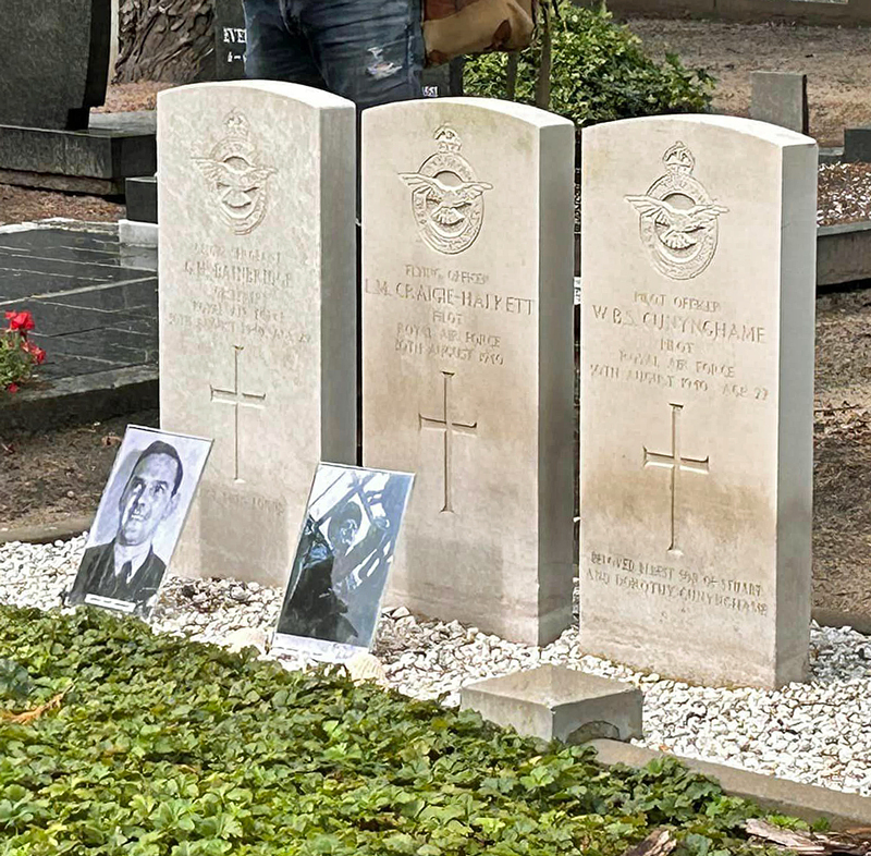 Patrick Watts 9former Manager of the Falkland Islands Broadcasting Servicer FIBS) commented in August 2023: 'Last week I journeyed to a small village called Halle (pop. 650) in the east of the Netherlands to attend a short ceremony of observance for 6 British Airmen who were shot down on 30 August 1940 and who are buried in the civilian cemetery … the pilot was a Falkland Islander named Lionel Montague Craigie-Halkett, aged 24. His father was Colonial Secretary and acting Governor on a few occasions in the Falklands. The official Remembrance service is held on 4 May but on 31 August children from a school in Halle make their personal contribution with readings and laying flowers at the Memorial. Last Thursday the headmaster explained, in considerable detail, exactly what happened on 30 August 1940. I was asked to briefly describe my interest in the graves, and I took an enlarged world map and informed the children that the pilot was not English but as a Falkland Islander he was very British and that I too shared a similar distinction. I pointed out the location of the Falklands and was able to tell them that Lionel had travelled 10,000 kms to U.K. and joined the RAF in 1939 and gave his life in the 'fight for freedom'. Quite amazingly on Wednesday we received a phone call from a 93-year-old lady who lives in Doetincham which is not too far from Halle. She was a 10-year-old girl in August 1940 and remembered the incident vividly and told us how she had cried bitterly at the time. Later, unknown to the Germans, she and her father secretly laid orange-coloured flowers on the graves. She recalled the funerals as well as the Germans, to their credit, did arrange a dignified burial, and a lone German aircraft flew overhead as a mark of respect'.