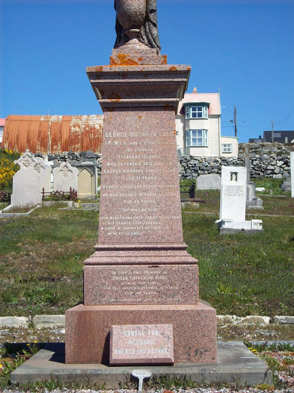 When George Dean died in 1888 negotiations began almost immediately to sell the very extensive Dean businesses to the Falkland Islands Company, except for the farms, Port Stephens (sold later to the Falkland Islands Company), and Pebble Island. Orissa inherited all the proceeds of her husband's share in the family concerns, and his interests in the retained farms.