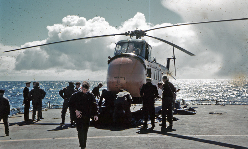 In December 1959, HMS Protector' s helicopters made it possible to complete the survey of the Jason Islands in two days as part of a training exercise with FIDS* surveyors on their way to Antarctic bases.