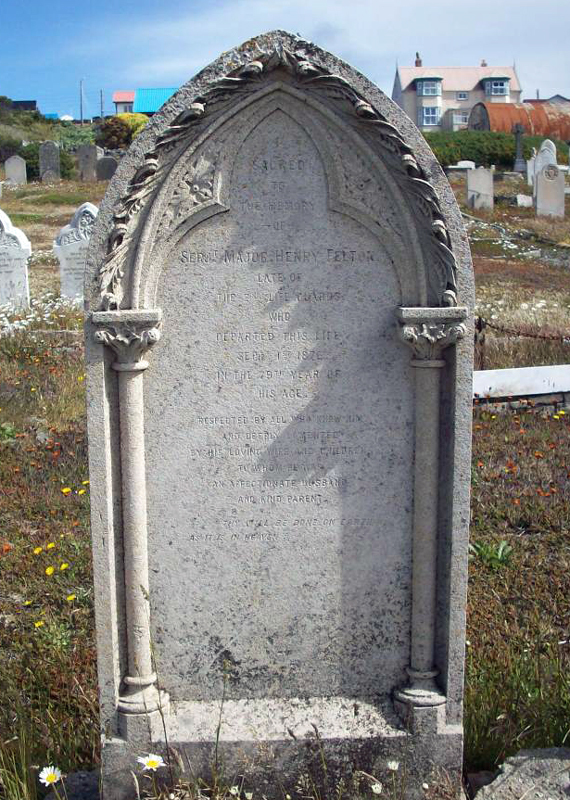 When Reid left, Felton became officer in charge of the pensioners and of the local militia. He served as a Justice of the Peace and as a member of ExCo, but no dates appear for these appointments. He died in 1876 at the grand age of 79 years, followed by his wife aged 66 years, in 1880.
