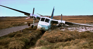 In November 1968 Miguel FitzGerald flew again to the Falklands. Since November 1964 he had been flying the twin-engined Grand Commander and the Cessna 206 owned by the company Editorial Sarmiento, publishers of the tabloid Crónica and the sensational magazine Así. In preparation for the arrival in the Islands of the British Minister Lord CHALFONT, Crónica's editor Héctor Ricardo García and FitzGerald decided to try a further landing. This time García wanted to attract publicity during Lord Chalfont's visit. They arrived at the Falklands but, when FitzGerald tried to land on the gravel road leading to Eliza Cove, his aircraft was damaged by the ditches on either side. Falkland Islands Government Air Service (FIGAS) engineers removed the wings from the plane, which was sent back to Argentina on board the transport ship Darwin via Montevideo.