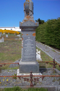 The elder Robert Greenshields himself died soon after Alexander's birth, on 18 October 1878 of liver disease. He was only 48 years old. In his will, made four days before his death, he left his estate in equal shares to his wife and all his surviving children, adding 'It is my wish that my wife Elizabeth Patterson Greenshields and my eldest son the aforesaid James Greenshields do carry on the business of sheep farming until the youngest child come of age'. James Greenshields duly took over the running of the farm. He was made a JP in 1892. In 1893 he married Isabella Shirlaw in Scotland and in 1894 they had a son, whom they christened Robert. In 1896 James Greenshields lost right arm in an accident lasooing a bullock, but continued to farm with as much energy as before. However he too died young. He was drowned with nine others, when a cutter in which they were travelling from Horseshoe Bay to Douglas Station (as the farm was known by then) disappeared in Salvador Water in June of 1898. His body was not found until six months later and he was buried in Stanley Cemetery. The Church Magazine noted that 'the Islands have lost a good master and a most successful farmer'.