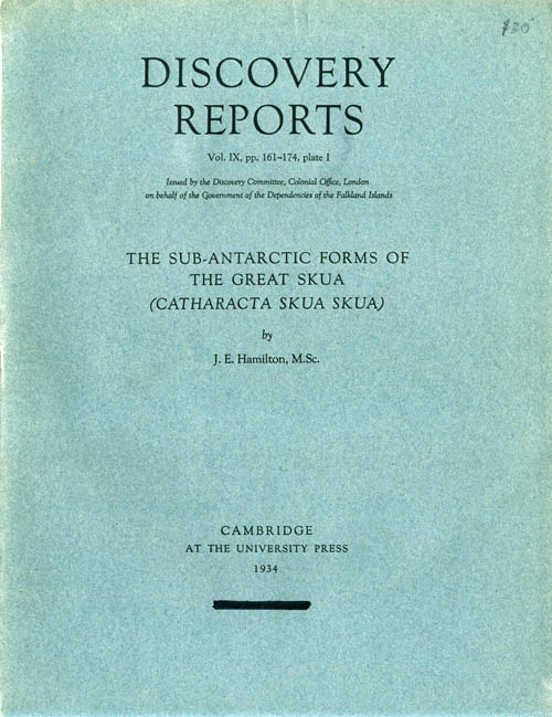 John Hamilton; The Sub-Antarctic Forms of the Great Skua (Catharacta skua skua); Discovery Investigations Report 1934