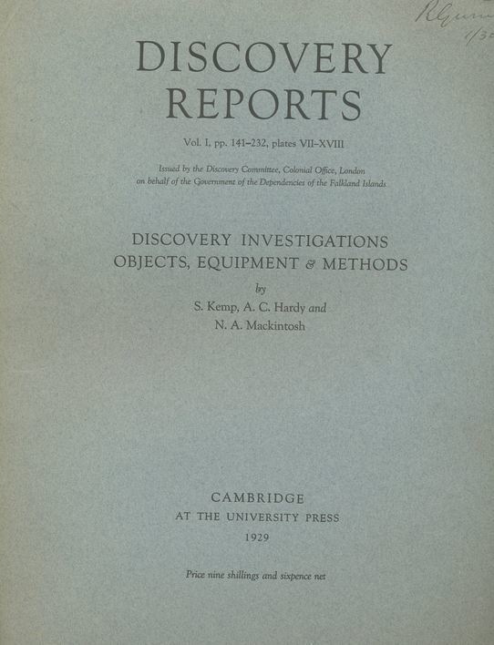 Harmer was vice-chairman of the Discovery Committee for eighteen years (1923-1941) and Chairman of the Scientific Sub-Committee. He was particularly connected with the appointment of Stanley Wells KEMP as scientific director, the programme for marking whales to establish their migration routes and age, and the establishment of the laboratories at the Natural History Museum in London where scientists worked on the data that had been collected at sea and in South Georgia.