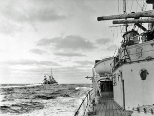 HMNZS Achilles seen from HMS Ajax...
