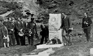 South Georgia was reached on 22 February where the governor's arrival was saluted with 17 blasts of dynamite atop a small hill near Grytviken. Hodson inaugurated the whalers' summer sports and presented a 'Governor's Cup' on 23 February. At King Edward Point he also opened the new rifle range. The granite memorial over Sir Ernest Shackleton's grave was unveiled on 24 February by Hodson in the presence of the magistrate (Frederick Black ALISON) and his wife, a large group of administrative staff and whalers, and representatives from RRS William Scoresby of the Discovery Investigations. Stanley was reached on 1 March 1928. A note published in the Geographical Journal described the voyage and included a selection of photographs taken by Hodson (1929).