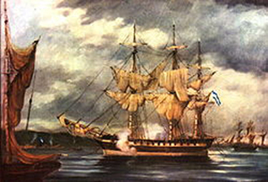 In mid-1815 he made his way to South America, where chaos reigned as the Spanish colonies fought, first for independence from Spain and then against each other. Jewett took to Buenos Aires his own ship, the Invincible, a 440 ton, 40 gun frigate with a crew of 180, and offered his services to the United Provinces of the River Plate. On 23 June 1815 he was granted a 'letter of marque'* by the United Provinces to prey on Spanish shipping, with the proviso that Spanish property found under the flags of Britain or the United States was to be respected. After a privateering voyage lasting 27 months, during which he captured four Spanish ships, he returned to Buenos Aires in early 1817, and the Invincible (now spelt Invencible) was sold. Presumably Jewett pocketed the profits from the sale of the ship as well as some of the prize money.