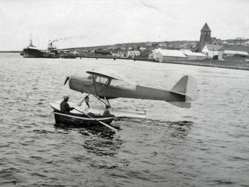 In September 1954, Kerr arrived in the Falkland Islands to take up a three year contract as chief pilot with FIGAS. He first flew on 20 September in Auster seaplane VP FAA. Joyce Kerr and the girls followed in April 1955 and the family lived in Marine House in the heart of Stanley. Kerr had chosen Marine House as he dearly wanted his family to be part of the community.