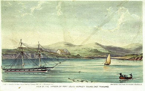 On his arrival in Port Louis, on 30 November 1837, Lowcay found only Smith, one of his boat's crew, a German tailor, a French gardener and three women; the other inhabitants were absent sealing in the schooner Montgomery. One of Lowcay's first tasks was to inform the master of the French whaler La Perseverance that the British government asserted in the strongest manner their sovereignty over the Falkland Islands and their right to prevent foreign vessels from fishing within three miles of the shore and that cattle, horses and wild animals were protected. Subsequently La Perseverance was wrecked near New Island, the survivors being taken to Río de Janeiro in the Montgomery.