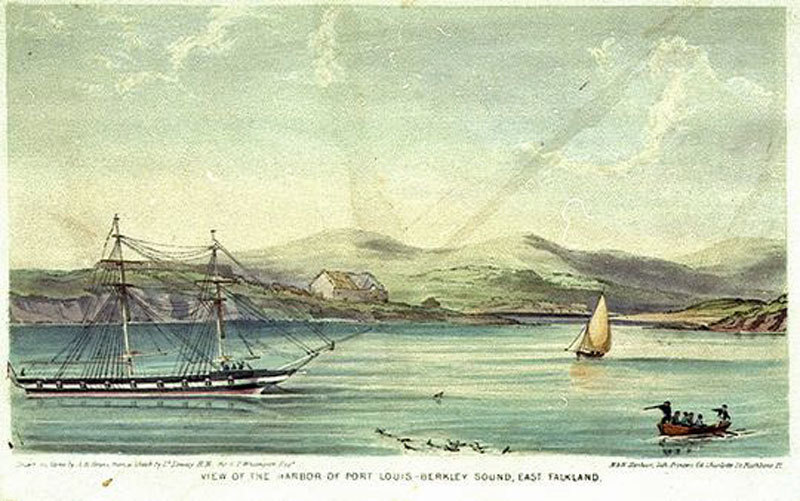 During 1838 Lowcay returned three times to Río de Janeiro. On 13 December he arrived back in Berkeley Sound on the same day as Lieutenant SULIVAN arrived in the Arrow to survey the islands. Sulivan reported that Lowcay was living at the time in one of two small houses in Port Louis, while Lauchlan MACKINNON, mate of the Arrow, noted that there were in addition three or four mud huts occupied by gauchos and their families, plus 200 tame cattle. In March 1839 Lowcay sent the Sparrow on a short visit to Gregory Bay (Bahía Gregorio), in the Strait of Magellan in an unsuccessful attempt to obtain horses. He himself sailed for Río de Janeiro for the last time in August 1839 and on his arrival there on 17 November he was superseded by Lieutenant John TYSSEN.