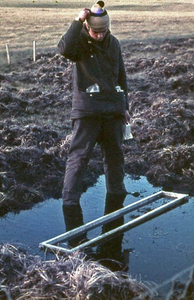 He had been a keen soccer player at university and greatly enjoyed the opportunity to play in the local league in Stanley. He was goalkeeper for Redsox over two seasons and was fortunate to be able to play for the national team on several occasions. According to the then veteran Stanley manager Doley Williams the only reason for not automatically selecting him more was that he clearly made up for lack of height by a reckless fearlessness in goal which was likely to result in him being carried off well before the end of any match! He was also able to keep up his interest in sub-aqua diving by participating in some memorable dives with friends Vernon Steen and Owen Summers. McAdam and visiting student geologist Dave Roberts planned and executed an expedition in 1978 to explore the bottom of the Black Tarn on Mt Usborne. This dispelled local myths that it was either bottomless or that its level went up and down with the tide and secured a valuable sediment core from the bottom which helped date the duration of the last ice age and subsequent post glacial vegetation history of the Falklands (see 1981 Falkland Islands Journal).