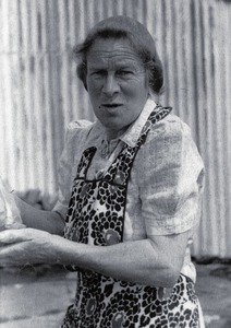 She was a marvellous housekeeper, the house always smelling of freshly scrubbed benches and polish which she used to make herself. She milked her cows every day, setting the milk in big white basins, and skimming the cream to make butter. A small, energetic and outspoken woman, she was endlessly hospitable.