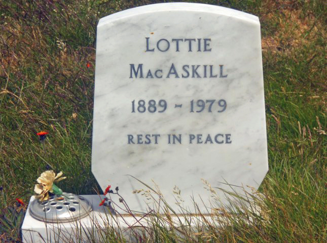 Mrs Mac continued to live at Goring House, looking after the young single shepherds who were now responsible for the flocks which Jack had looked after for so many years.In 1973 she moved to Stanley, taking with her her two favourite cows and her old dog.Mrs Mac and her sister-in-law Rosie, widow of her brother Dave, lived together in a bungalow on Davis Street, and she could be seen regularly setting off to milk her cows or taking them to new grass.