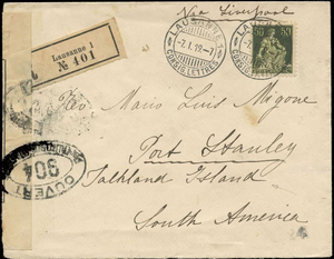 In 1914 Migone helped to form a branch of the Red Cross in Stanley. Acutely aware of the sufferings of the French and Belgian populations in World War I he sent some of the profits from his cinema to relieve their suffering. Governor ALLARDYCE in the early years of the war had supported this but Migone in 33 Anos de Vida Malvinera records an unfortunate public rift with Governor YOUNG in 1916 over his wish to send funds to help the widows and orphans of French soldiers killed at Verdun. He also mentions in that book the arguments he had in later years with Governor HODSON in which he asserted the validity of the Argentine sovereignty claim.