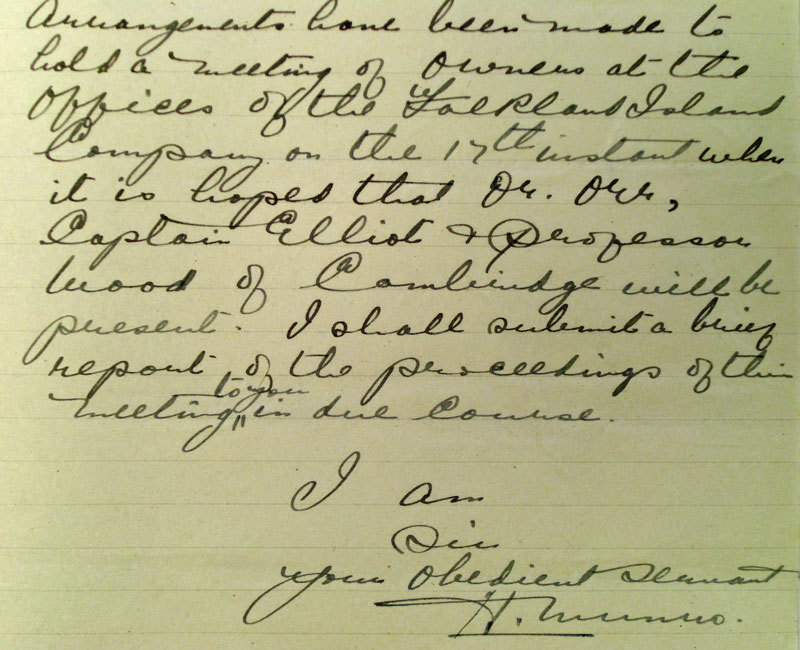 After eight months, Munro returned to New Zealand. On his way home he met the Board of the Falkland Islands Company in London, on 8 January 1925. They unanimously resolved to thank Hugh Munro for his work, but rejected his assertion, as far as the FIC's farms were concerned, that overstocking caused pasture and stock deterioration.