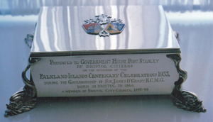 The celebrations were appropriately concluded with the gift of a fine silver 'smoking set' from the City of Bristol for use at Government House (the cigar box is still held at GH).