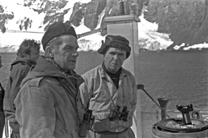 Eagle entered Port Foster, Deception Island (Base B), on 29 January. During this leg of the voyage, Sheppard sustained broken ribs and internal damage after he was washed off the bridge onto the deck, an event which contributed to later medical difficulties. Although the expedition’s doctor, Surgeon Lieutenant Eric Back, recommended that he return to Stanley for treatment, Sheppard refused on the grounds that this would mean the loss of Eagle and significantly reduce the chances of Base D being established.