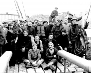 Sheppard and his crew of twenty-seven Newfoundlanders, including an eighty-year-old bosun, a seventy-seven year old chief engineer and a sixty-eight year old chief officer, took Eagle out of St John’s on 24 October 1944 in convoy WB 133 to Halifax, Nova Scotia, to load specialist stores before arriving at Stanley on 17 January 1945 after making seven coaling stops at ports in the Caribbean and South America. Loaded with new expedition personnel, construction materials, and huskies shipped south from Labrador via the United Kingdom,