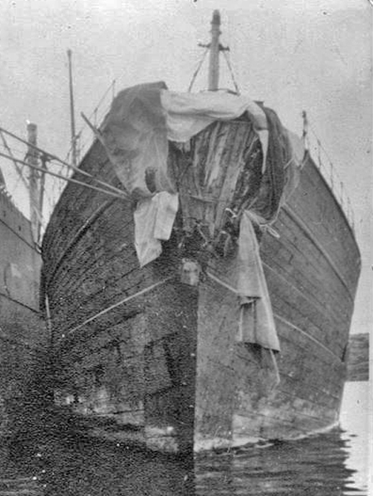 As construction proceeded, Sheppard took Eagle back to Deception Island on 2 March to collect further materials. However, much to his concern about the encroaching winter and the possibility of being trapped in Hope Bay, bad weather prevented him from returning until 12 March. His concerns were realized on 17 March when ice calving from the nearby Depot Glacier during a storm severely damaged his ship’s bow. Faced with flooding and the potential abandonment of Eagle with possible loss of life, Sheppard made the decision during a lull in the storm to run for Stanley where he arrived on 24 March albeit with some of the base cargo still on board.