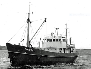 In 1949 he was promoted to master and served in this capacity until the Philomel was replaced in 1967 by the purpose built MV Forrest. Jack took over as master on the new vessel and commanded her for the rest of his working life. In 1977 he was awarded the MBE in the Queen's Birthday Honours.