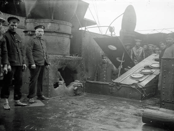 Coaling was incomplete when the following morning lookouts on Sapper's Hill sighted the approaching German ships and alerted Sturdee who calmly finished dressing and took breakfast. The vanguard of the German squadron comprised the armoured cruiser Gneisenau and the light cruiser Nurnberg and their immediate reaction to receiving a salvo from the concealed Canopus has intrigued naval strategists ever since.