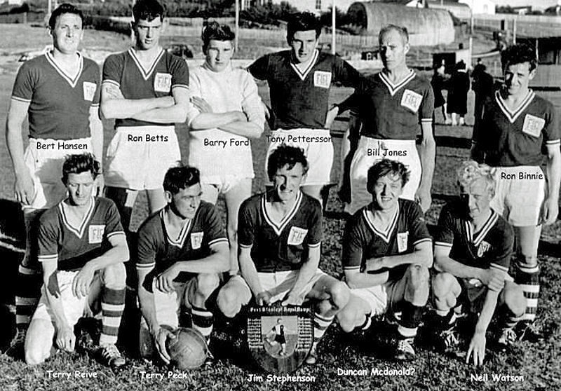 Watson also loved football and soon became a regular in the Stanley team, usually in the First Eleven and was so versatile that he could play in any position on the field. He was a first-team regular for many years and he took great pride in pulling on the blue jersey to represent the Falklands against visiting Royal Naval and Royal Marine teams.