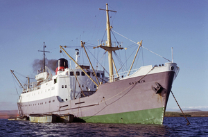 White then took delivery of the brand-new RMS Darwin on 17 June 1957 in the UK and brought her back to Stanley in August 1957. The Darwin made monthly camp trips round the Falkland Islands; to and from the various settlements, delivering and collecting mail, food, hardware, necessities and of course the annual wool clip. She also made trips at the same frequency to and from Montevideo and visited South Georgia as necessary on the same tasks.